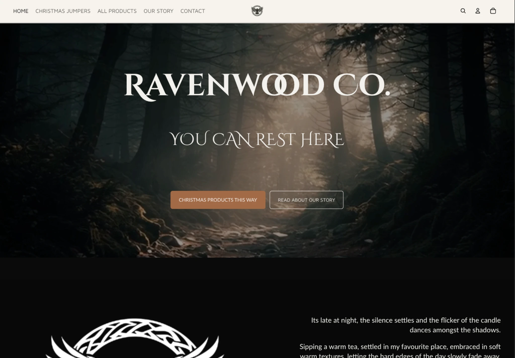 Ravenwood Co began as a clear creative idea without the visual structure needed to turn it into a functioning brand. The founder had a strong sense of the atmosphere they wanted to create, but no established identity or website to communicate it to customers.