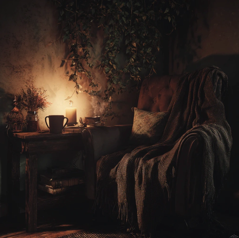 The brand was intended to feel calm, slightly mysterious, and comforting. The inspiration came from woodland imagery, soft fabrics, candlelit spaces, and quiet, atmospheric environments.